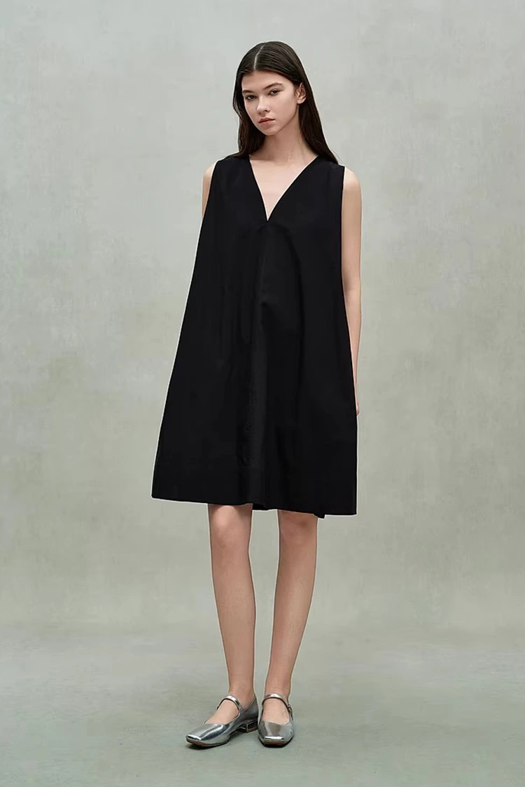 Aby sprostać podstawowym wymaganiom zakupów hurtowych, damska bawełniana sukienka z głębokim dekoltem w kształcie litery V ma uniwersalny i przyjazny krój. Zapewnia doskonałą integrację dla różnych typów budowy ciała, a osoby ważące od 80 do 140 funtów mogą z łatwością sobie z tym poradzić. To znacznie poszerza krąg odbiorców sprzedaży po dokonaniu zakupu i zwiększa stopę zwrotu zakupów. Głęboki dekolt w kształcie litery V jest prosty i elegancki, co nie tylko udoskonali linię ramion i szyi oraz wydłuży proporcje szyi, ale także nie będzie nadmiernie odsłaniać. Zapewnia balans pomiędzy elegancją a swobodą. Całość charakteryzuje się umiarkowanie luźnym krojem, dokładnie zakrywającym nadmiar tkanki tłuszczowej w talii, biodrach itp. i minimalizującym mankamenty sylwetki. Nie ma konieczności celowego doboru rozmiaru, co zmniejsza trudność dostosowania rozmiaru w sprzedaży terminalowej. Krój bez rękawów jest odświeżający i schludny, odpowiedni do noszenia w lecie. Jednocześnie zapewnia kupującym bardziej elastyczną przestrzeń do ubierania i dopasowywania, spełniając potrzeby wielu scenariuszy sprzedażowych.