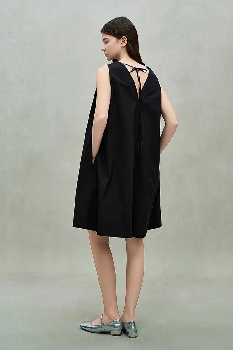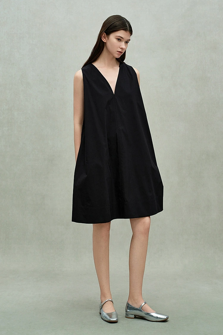Damska bawełniana sukienka z głębokim dekoltem w kształcie litery V ma każdy szczegół dostosowany tak, aby spełniać wymagania zarówno dotyczące zamówień, jak i użytkowników końcowych, zwiększając konkurencyjność produktu. Konstrukcja paska na plecach pozwala na regulację szczelności, dodając swobodnego charakteru prostej sylwetce, a jednocześnie elastycznie dopasowując się do różnych kształtów ciała. Tworzy delikatne wrażenie odsłonięcia pleców, unikając niezręczności głębokiego dekoltu w kształcie litery V i równoważąc estetykę i przyzwoitość. Ukryta kieszeń po obu stronach płynnie łączy praktyczność i estetykę, ułatwiając przechowywanie drobnych przedmiotów, takich jak telefony komórkowe i szminki do codziennego użytku, poprawiając komfort noszenia przez użytkowników końcowych. Jednolity kolor jest klasyczny i trwały, nie ogranicza się do żadnego konkretnego stylu, nadaje się do różnych scenariuszy i zapewnia kupującym elastyczną przestrzeń dostosowywania, pomagając tworzyć zróżnicowane produkty.