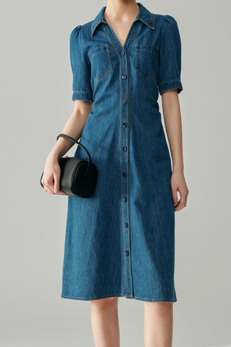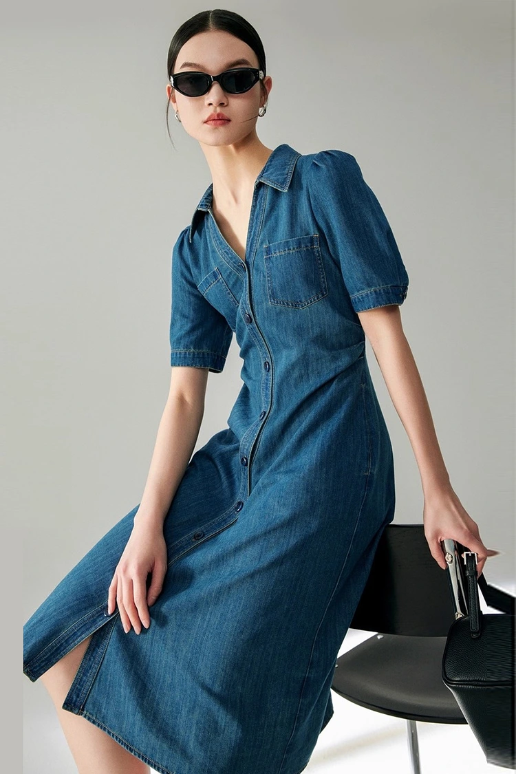 Sukienka damska Jeans Cotton Classy Dress wykonana jest w 100% z wysokiej jakości czystej bawełny, która jest jednym z najpopularniejszych materiałów w sezonie wiosenno-jesiennym. Charakteryzuje się doskonałą oddychalnością i wchłanianiem wilgoci, jest miękki i wygodny w noszeniu, nie powoduje podrażnień, jest odpowiedni dla każdego rodzaju skóry i ma wyjątkową wytrzymałość, trwałość i łatwość prania. Po praniu nie strzępi się, nie odkształca i nie blaknie, może długo zachować prosty i pulchny kształt, ma niskie koszty posprzedażowe i szczególnie nadaje się do sukienek biznesowych i codziennych do pracy. Jest to także podstawowa zaleta materiałowa tego produktu.