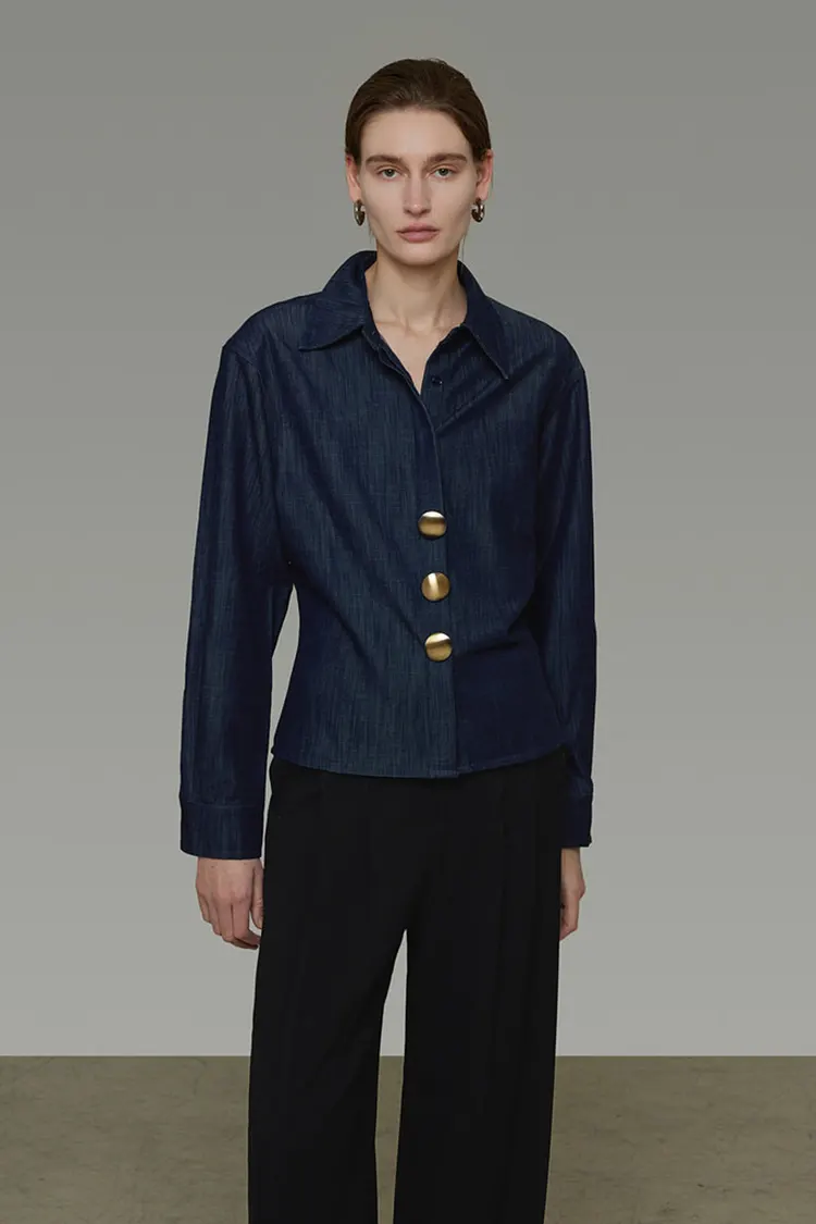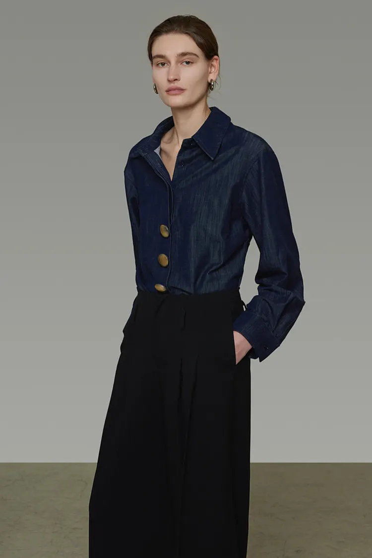 Damska bluzka jeansowa Vintage doskonale łączy w sobie urok retro z wykwintnymi detalami. Jego wszechstronne atrybuty są widoczne i można go łatwo połączyć z różnymi przedmiotami, takimi jak dżinsy, spódnice, spodnie codzienne i spodnie garniturowe. Nadaje się do codziennych dojazdów do pracy, weekendowych wycieczek, nieformalnych spotkań, lekkich spraw biznesowych i innych scenariuszy. Jest to klasyczny element, który można nosić przez cały rok i który pozostaje ponadczasowy, charakteryzujący się niskim ryzykiem hurtowym i wysokim współczynnikiem ponownych zakupów.