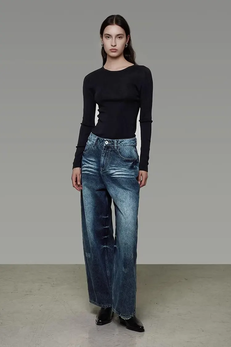 Damskie spodnie z szerokimi nogawkami spranego dżinsu mają minimalistyczny krój z guzikami i wysoką talią, co nadaje im wygląd retro. Jest zarówno swobodny, jak i wyrafinowany i można go łatwo łączyć z różnymi stylami mody. W połączeniu z T-shirtami, koszulami, kardiganami, kurtkami czy krótkimi topami może prezentować różne style. Nadają się do dojazdów do pracy, wyjść, randek, nieformalnych spotkań itp. i są bardzo praktycznymi i wszechstronnymi spodniami uniwersalnymi w garderobie.